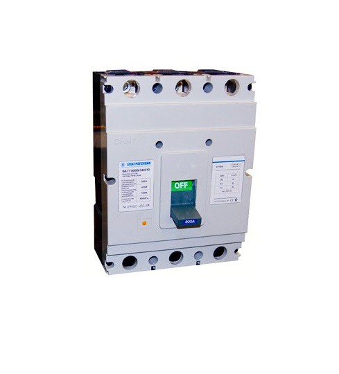 Автоматический выключатель серии ВА77 предназначен для проведения тока в нормальном режиме и отключения тока при коротких замыканиях, перегрузках, недопустимых снижениях напряжения, а также для нечастых оперативных включений и отключений электрических цепей с номинальным напряжением до 660 В переменного тока частотой 50 и 60 Гц и на номинальные токи от 10 до 1250А.