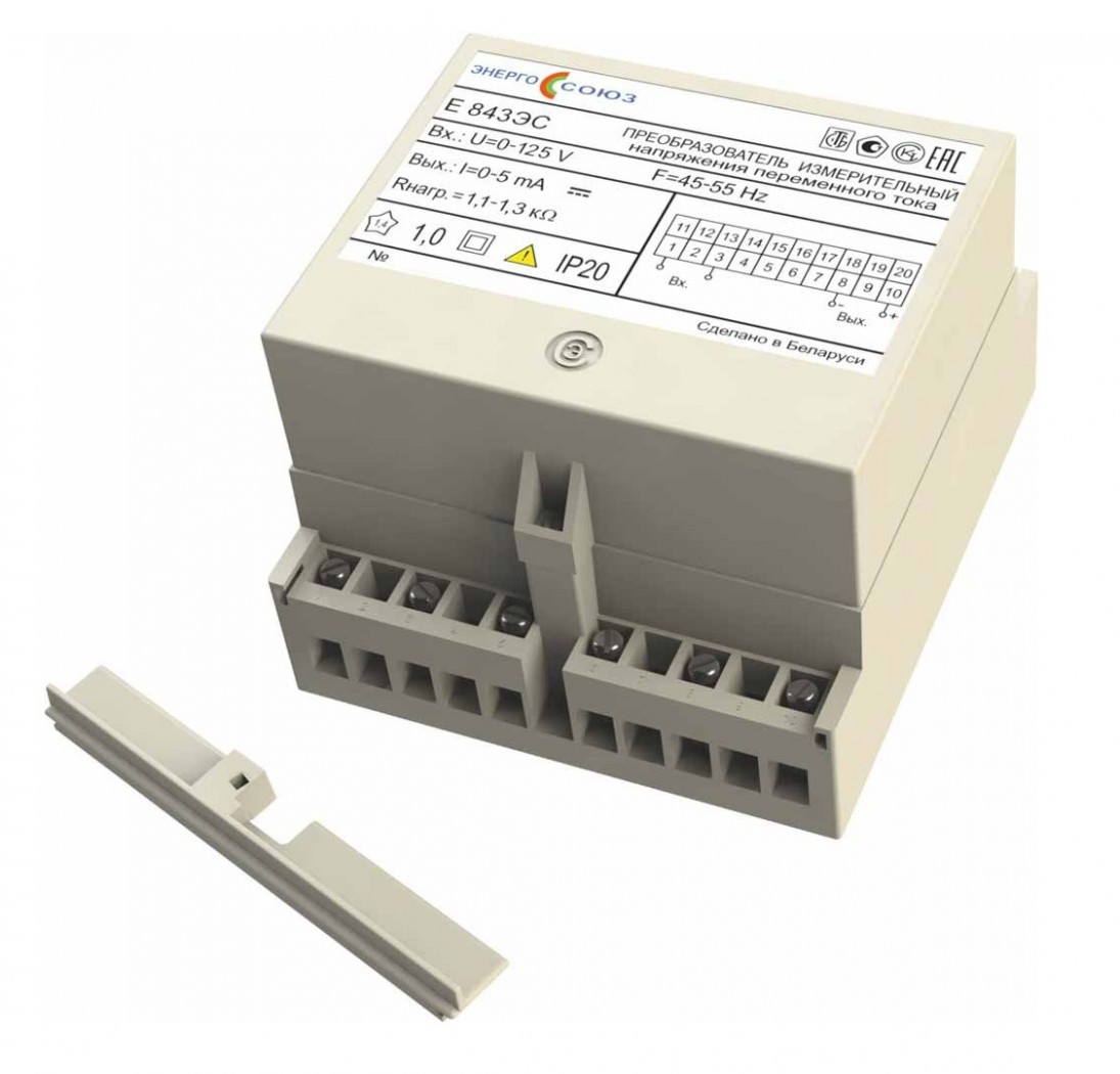 Преобразователь измерительный напряжения переменного тока Е 843ЭС,0–500B, 0–5 мА