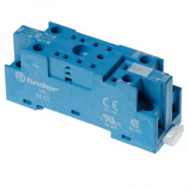 Розетка для реле 55.32, 85.02 и модуля 99.01 (тип 94.82) 9482SMA, с комбинированными контактами; с металлическим фиксатором; винтовые зажимы; узкая; синяя; 10А