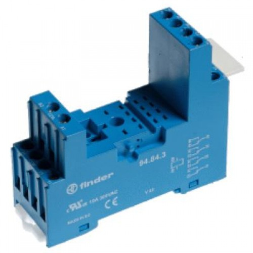 Розетка для реле 55.34, 55.32, 85.02, 85.04 и модуля 99.80 (тип 94.94) 94943SPA, с раздельными контактами; с пластиковым фиксатором; винтовые зажимы; синяя; 10А