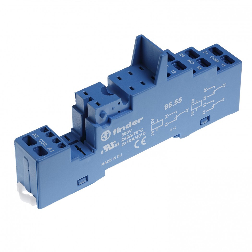 Розетка для реле 40.51, 40.52, 40.61, 44 и модуля 99.02/86.30 (тип 95.55) 9555SMA, с раздельными контактами; с пластиковым фиксатором; пружинные зажимы; синяя; 10А