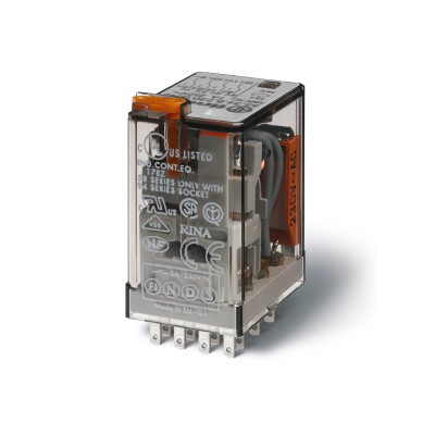 Миниатюрные универсальные реле (7A-10А) 553492200040: 4CO; 7A; 220В DC; AgNi; универсальное; блок.кн.тест + мех.индикатор; розетка S94; RT I