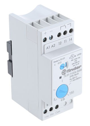 Реле контроля жидкости (тип 72.18) 720181250000; функции наполнения или дренажа; задержка 0,5-7сек.; чувствительность 5-150кОм; 1 перекидной контакт 16А (~ 125В