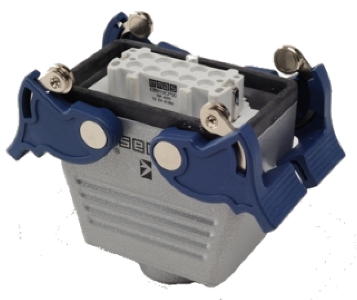 Промышленный разъем с 4-х рол. фиксатором,со штепселем, монтаж на панель 10 полюсов,2 боковых ввода, мама, металл, 16А, EBM10FD24