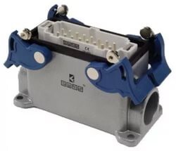 Промышленный разъем с 4-х рол. фиксатором,со штепселем, монтаж на панель 16 полюсов, 2 боковых ввода, мама, металл, 16А, EBM16FD24