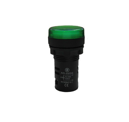 Индикаторная лампа AD-22DS, зелёная, ET520287, светодиодная матрица d=22мм, 230В, индикаторная лампа