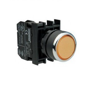 Кнопка круглая d=22 желтая B101DS без фиксации с возможностью подсоединения блок контакта подсветки (2НО).