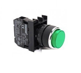 Кнопка нажимная d=22 B101HY круглая выступающая зеленая без фиксации.