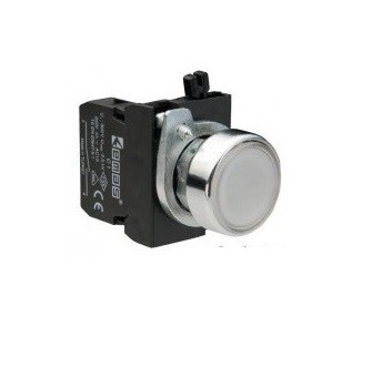 Кнопка нажимная d=22 B102FB круглая белая c фиксацией с возможностью подсоединения блок контакта подсветки (1НО+1НЗ).