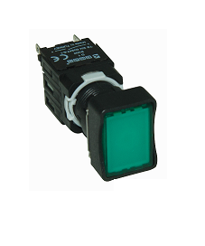 Кнопка нажимная прямоугольная (16 мм, 1НО+1НЗ) без фиксации зеленая, D102DDY