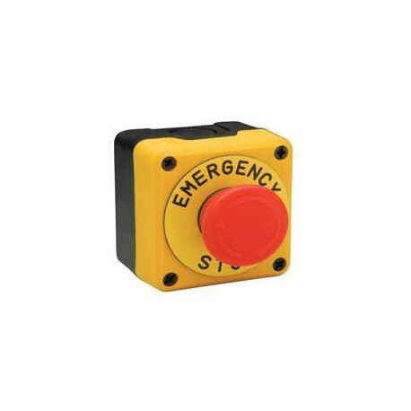 Кнопочный пост управления P1EC400E40K, желто-черный 1НЗ кнопка "Грибок" с фиксацией и табл. "EMERGENCY"