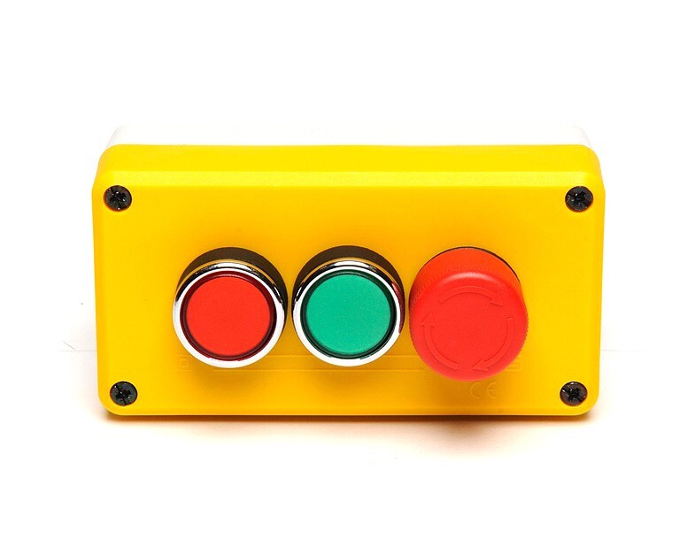 Кнопочный пост управления P3EC1A2B-E30, пластмассовый пост управления трехкнопочный с кнопками B100DY(1НО), B200DK(1НЗ), В200Е30(1НЗ)