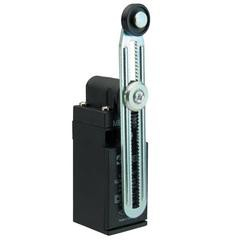 Выключатель концевой медленного переключения угловой 2-направленный с пластмассовой консолью, роликом d=18мм на регулируемом изогнутым рычаге (1НО+1НЗ)