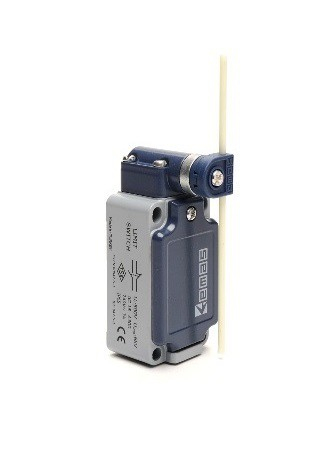 Выключатель концевой быстрого переключения угловой 2-направленный с пластмассовой консолью, роликом d=18мм на регулируемом изогнутым рычаге(1НО+1НЗ)