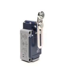 Выключатель концевой быстрого переключения угловой 2-направленный с пластмассовой консолью, стальным роликом Ф18мм на коротком регулируемом рычаге (1НО+1НЗ)