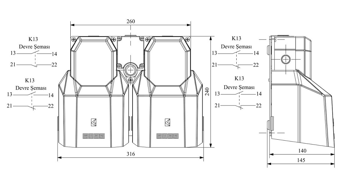 Двойная педаль (1 скорость) с защитный кожух и основание для ручки 2x(1НО+1НЗ)+2x(1НО+1НЗ), PPKA22GG10
