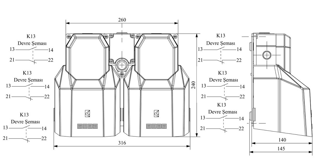 Двойная педаль (2 скорости) с защитным кожухом и основанием для ручки 3x(1НО+1НЗ)+3x(1НО+1НЗ), PPKA22UU20