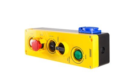 Пост управления, желто-черный, 5 кнопок, 2 круглые со стрелкой, аварийная, переключатель, сигнальная арматура, PA5501